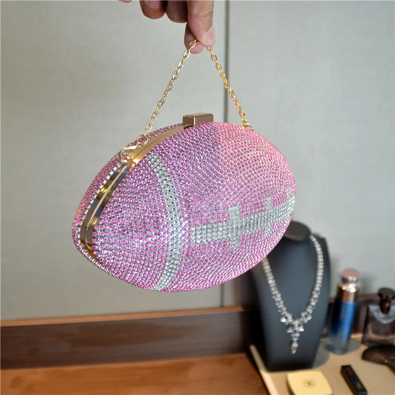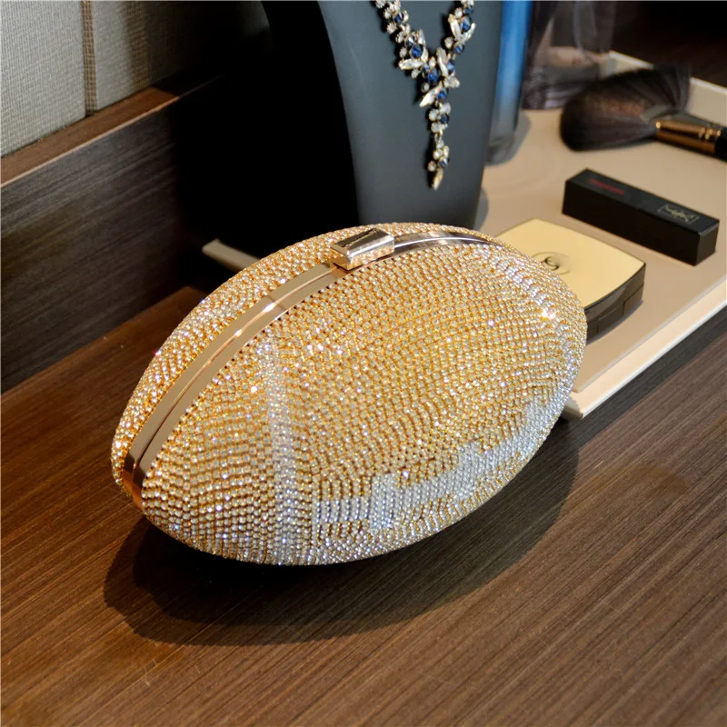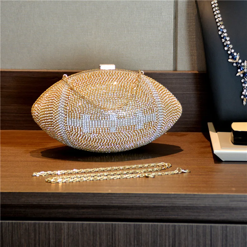 TOUCHDOWN BLING BAG ! - Diamond/Crystal - Luxury Football Clutch - Diamond Evening Clutch Purse Bag Sports Football Shape Handbag Trendy Fashion One-shoulder Lady Rhinestone